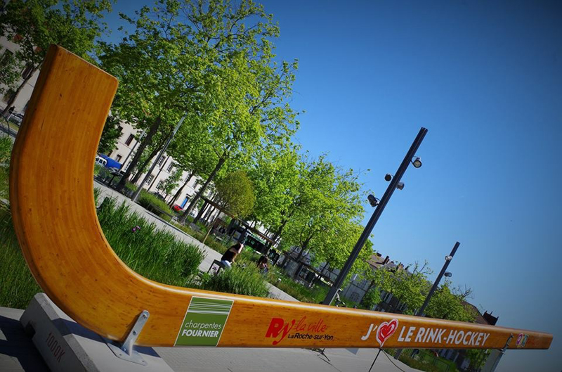 Notre réputation en matière de construction en bois lamellé collé a connu un très beau moment lors du MONDIAL DE RINK HOCKEY, qui s’est déroulé à La Roche-sur-Yon du 20 au 27 juin. Cet événement sportif de renommée internationale a donné à Charpentes FOURNIER l’occasion de briller sous les feux de la rampe en exposant une pièce unique : une crosse en lamellé collé fabriquée il y a quelques années pour un championnat précédent.