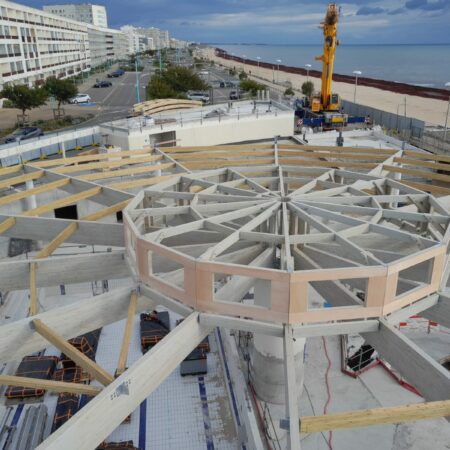 La charpente en bois lamellé collé offre une possibilité illimitée de formes, donnant vie aux projets architecturaux les plus ambitieux. C’est le matériau idéal pour votre bâtiment de loisirs, qu’il s’agisse d’un complexe sportif, aquatique, d’un cinéma…
